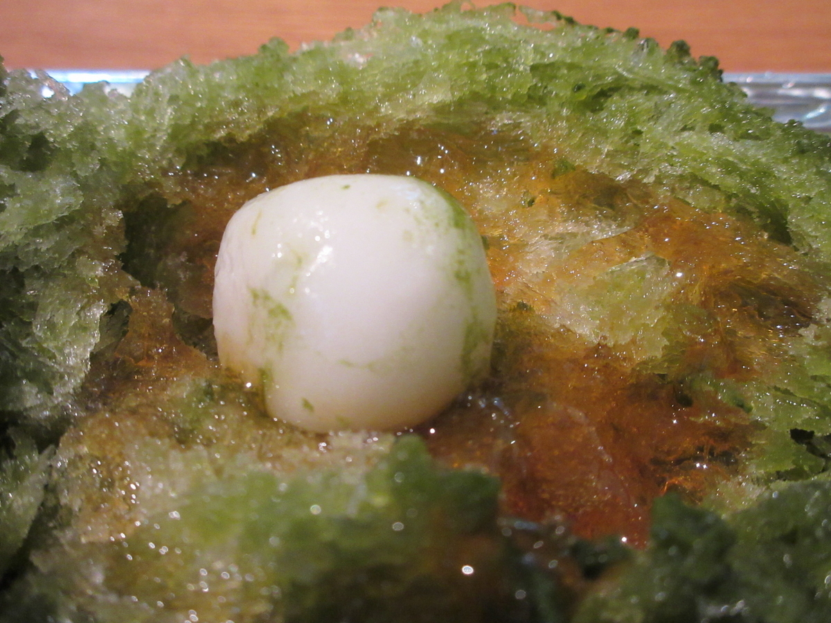 氷の表面は手で少し押さえて固めた感じですね。表面だけスプーンですくいにくく、表面さえ抜ければ中身はふわふわ氷でした。