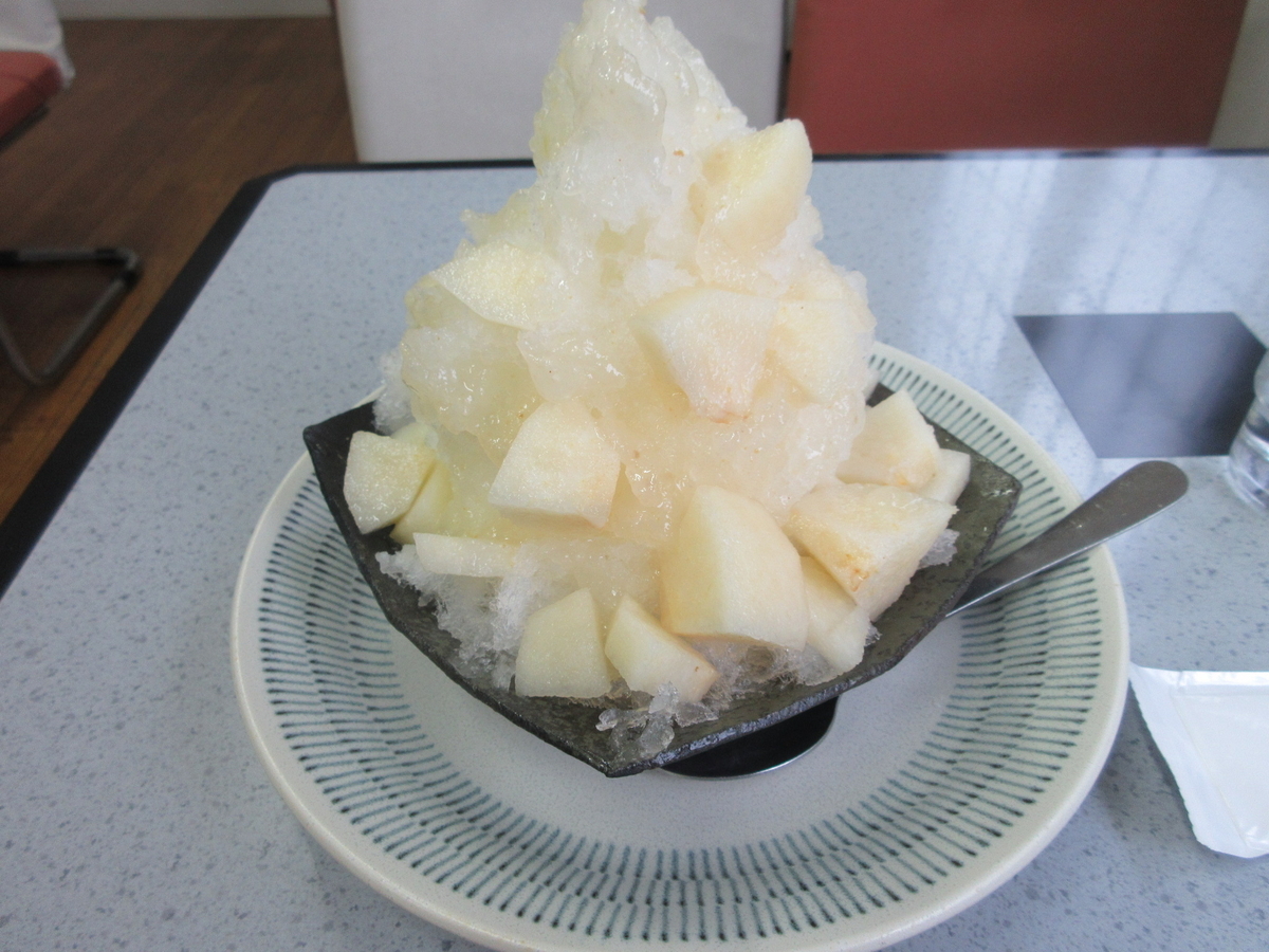 途中心変わりすることなく予定通り 梨のミルクのかき氷を注文しました。