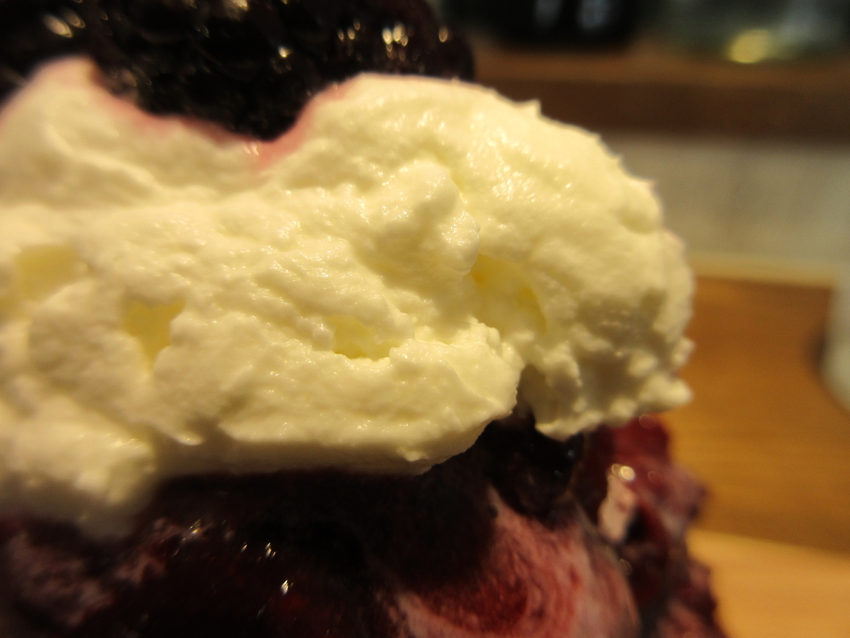 頂上にはマスカルポーネクリームとブラックベリーが どん、とのっかっています。